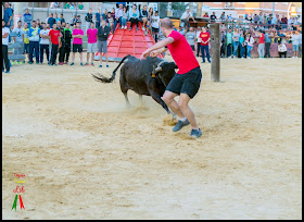| Buena rodada de este aficionado intentando anillar a la vaca. |